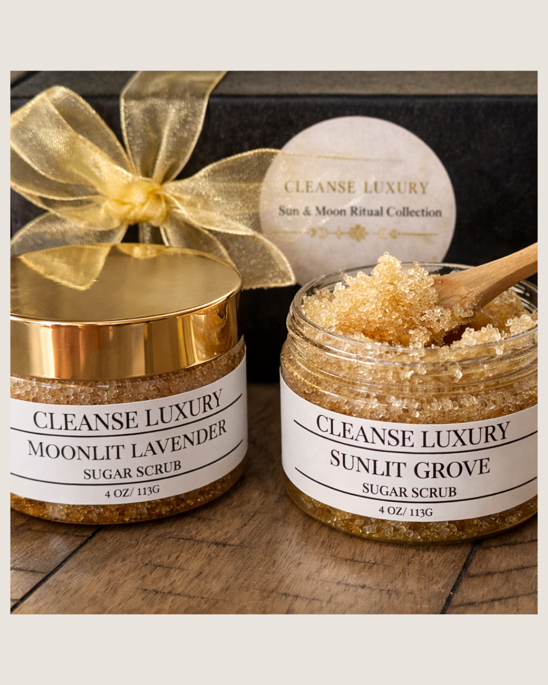The Sun & Moon Ritual Collection by Cleanse Luxury is a refined sugar scrub gift set designed for everyday care and effortless gifting.